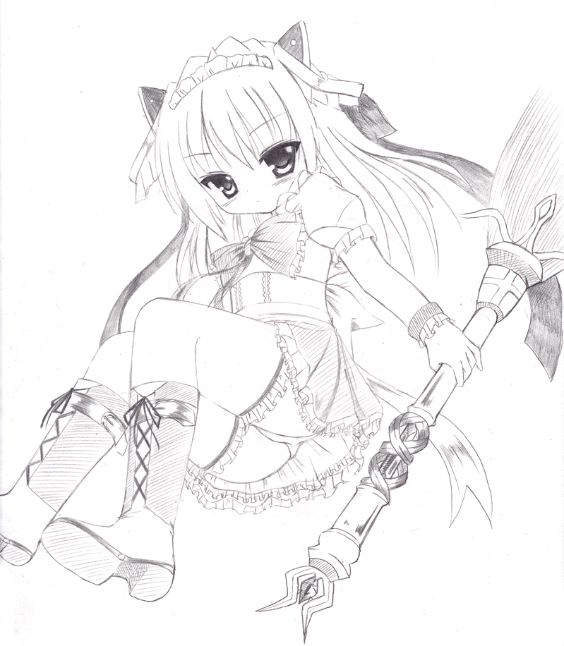 では絵を、自分的にはメイドを描いたつもりでしたが友達に見せたところ「魔女っ子?」っといわれてしまったOH〜